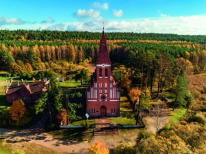 Kościół pw. św. Jana Chrzciciela w opuszczonej wsi Orzechowo fot. Dron Olsztynek Bartosz Zembrzuski
